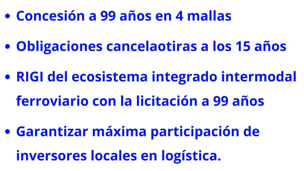Como en el Modelo 5F el concesionario no comercializará carga, sino el uso del sistema, ese 25% de la inversión será el 100% del sustento del ecosistema integrado e intermodal ferroviario.