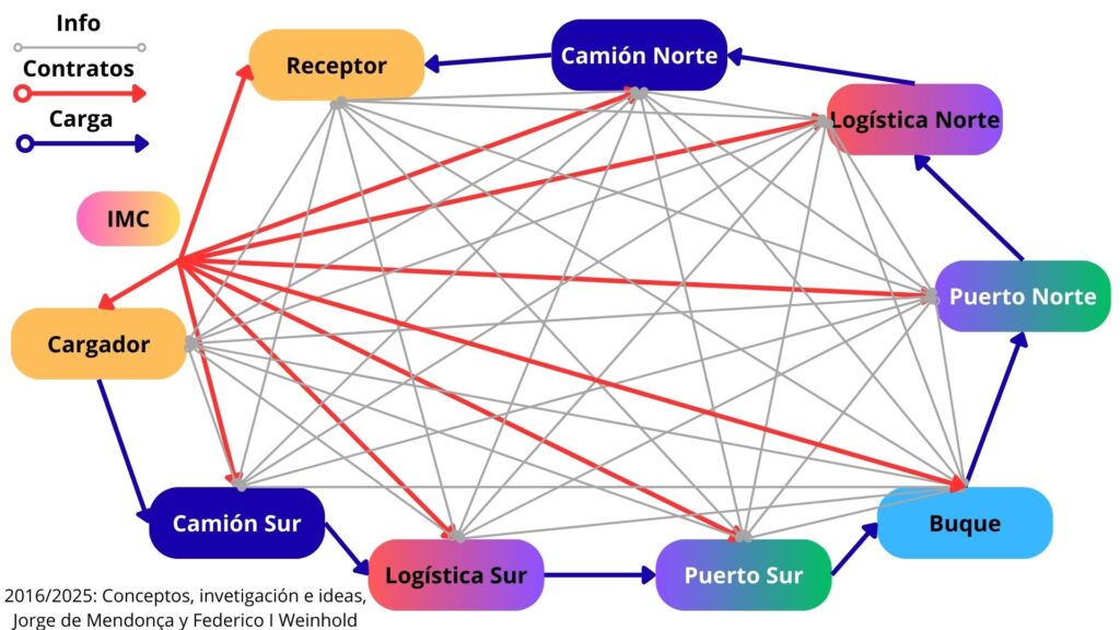 Regresando a aquel desarrollo, y ante la respuesta de los interesados de los tres corredores mencionados, hoy la Asociación está confeccionando las herramientas técnicas y administrativas que servirán para el encadenamiento intermodal y para la conformación de la dirección de orquesta: El IMC, el operador intermodal.
