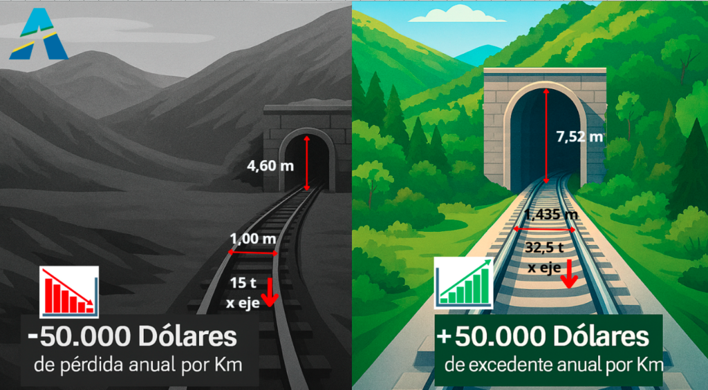 Las pymes de cada rincón y el comercio regional necesitan lo mismo: En el cruce de la Cordillera, entre minería, granos y cargas generales, la demanda de carga por el Corredor Capricornio superará las 15 a 18 millones de toneladas. Aunque con menor intensidad, algo similar sucederá en el corredor Atlántico – Pacífico a la altura de Neuquén- Araucanía/BioBio: En ambos casos requerirán que el ferrocarril de Argentina se integre intermodalmente con un modelo rentable en alianza con camiones y puertos.