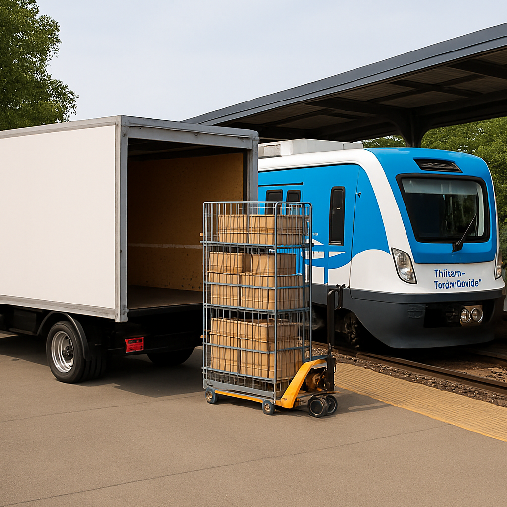 En las estaciones, en un extremo a uno o ambos lados de la franja ferroviaria se deberán desarrollar pequeños espacios de transferencia a móviles de entrega minorista y, cuando el espacio lo permita, también podrán instalarse diferentes operadores de paquetería que podrán realizar los envíos directos al público desde allí.
